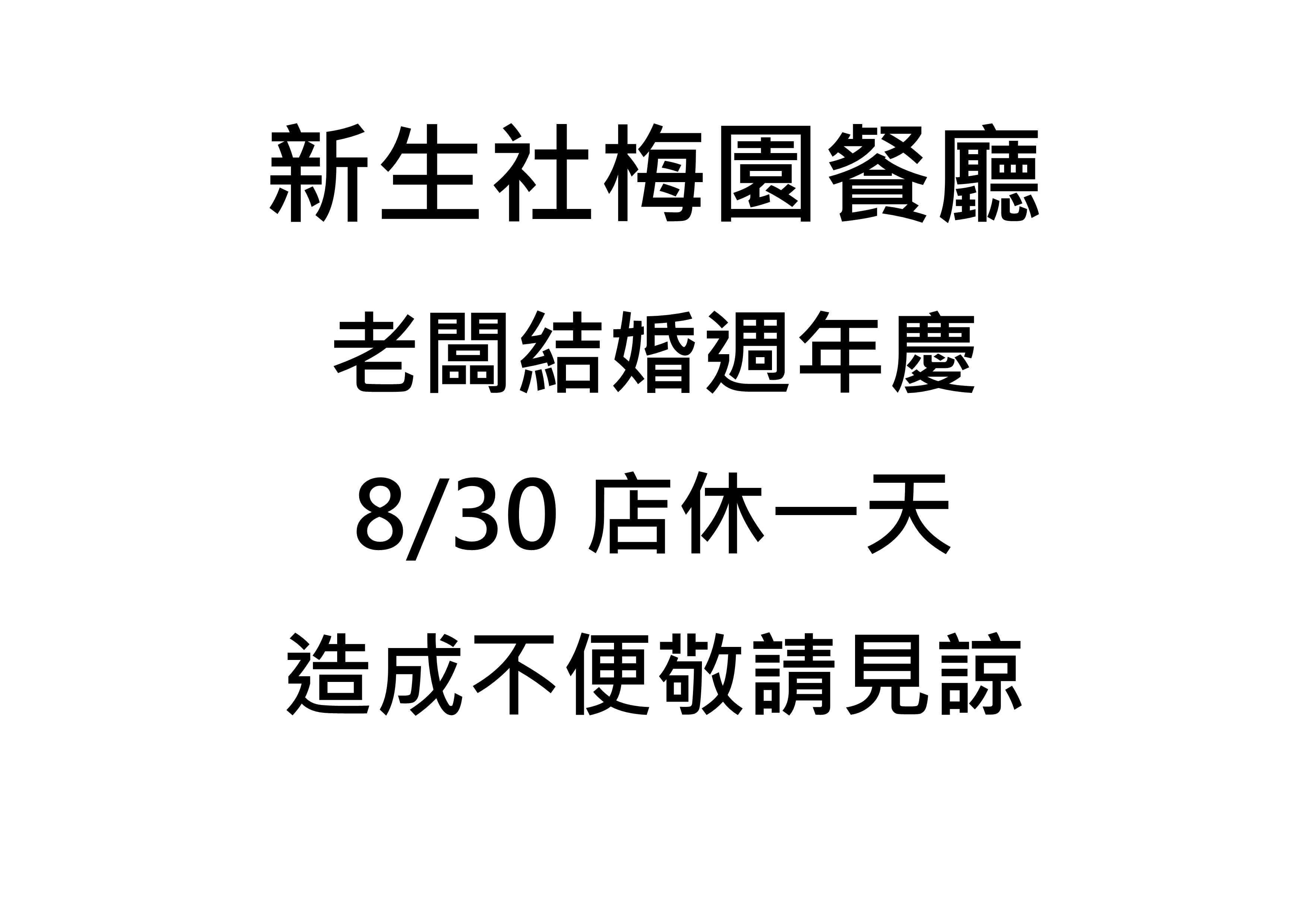 餐廳店休公告