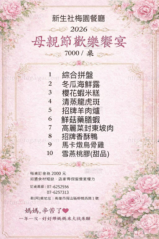 母親節限定合菜預訂開跑
